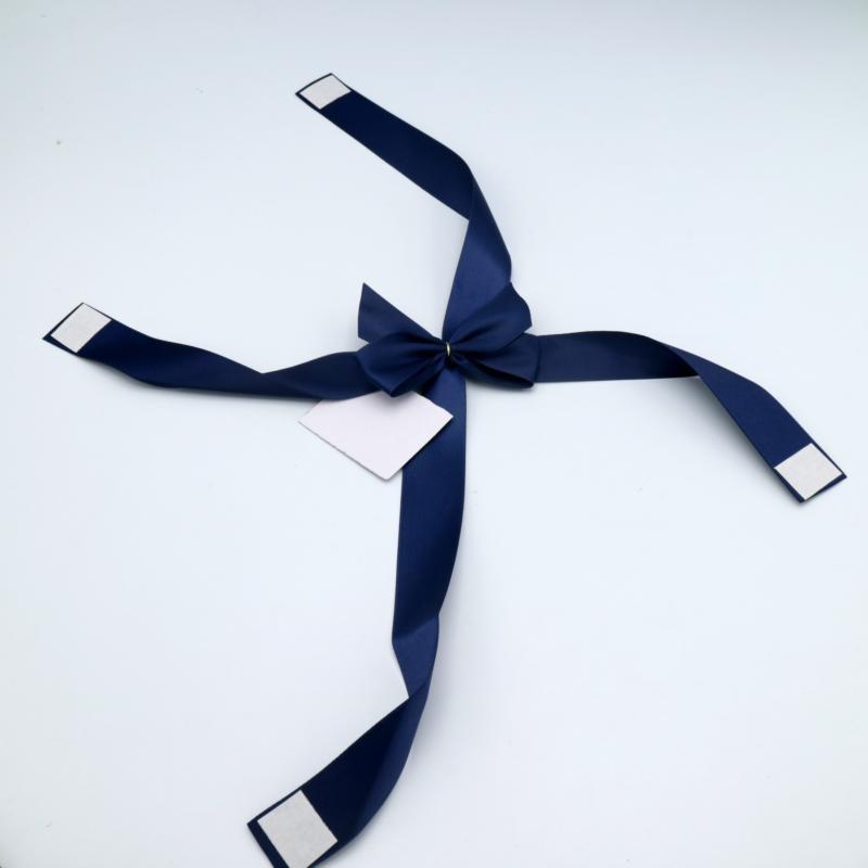 Ribbon bow with Horizontal strip and DF sticker. easy peel covers and strong glues to fix the bow firmly on the box.